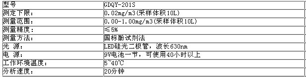 | GDQY-201S型便攜式現(xiàn)場甲醛測定儀 | 測定下限:0.02mg/m3,測量范圍:0.00-1.00mg/m3,測量精度:5% | 1 | 8640元 | 配置:主機1臺,樣品前處理器具1套,100套甲醛試劑 |