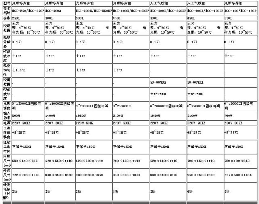 | MGC-350HP人工氣候箱(強(qiáng)光)——無氟制冷 | 27360元 | 控溫范圍:無光照:4~50℃有光照:10~50℃光照強(qiáng)度:0~20000LX四級(jí)可調(diào) | ||